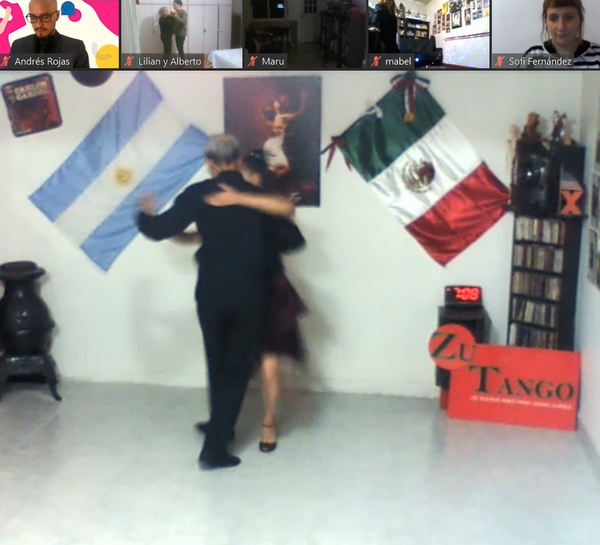 在疫情之前,探戈舞唱片骑师(DJ)安德雷斯抱着电脑播放设备穿梭于各大演出场所。2020年,隔离的他在家中通过视频软件主持一个云舞厅。在正式开场之前,他会要求所有参与者打开摄像头,跟随他的音乐一起舞蹈。与在舞场有固定搭档不同,云舞厅里则是另一番景象。他看到有人会精心装扮自己,虽然在家中也要穿上漂亮的礼服。有时人们也会调暗灯光,做好准备姿势,即使面对屏幕也略显紧张。有时一位老人优雅地在角落起舞,但当他旋转到亮处,安德雷斯却发现老人并没有舞伴,一直都是一个人。“没有什么能够取代拥抱在探戈中的地位”,安德雷斯说,“可能线上模式还要持续一段时间,但是我希望2021年能够看到人们再次相拥、一起跳舞”。