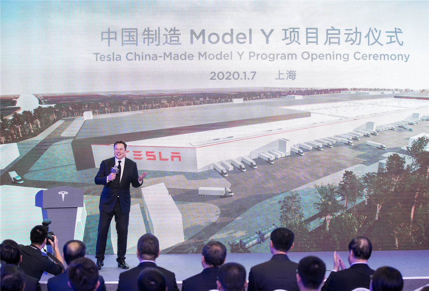 1月7日,在特斯拉上海超级工厂,特斯拉首席执行官马斯克出席中国制造Model Y项目启动仪式。新华社记者 丁汀 摄