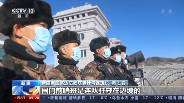 新疆军区某边防团塔克什肯连班长 陈志春:我们现在站立的地方距离边境线仅50米,国门前哨班是连队驻守在边境的第一道防线。这里视野开阔,便于观察和第一时间处置边境情况。