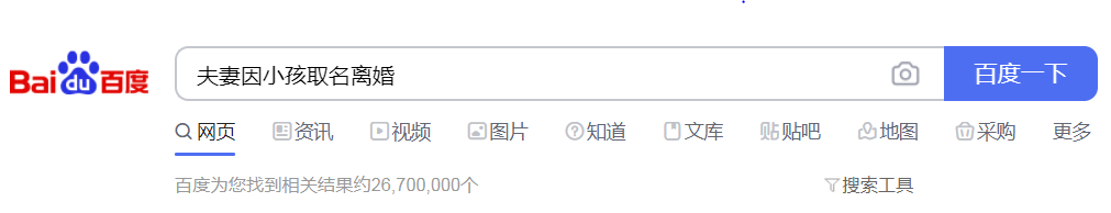 在百度上搜索“夫妻因小孩取名离婚”