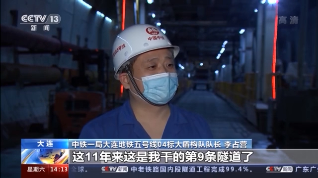 中铁一局大连地铁五号线04标大盾构队队长 李占营:这11年来这是我干的第9条隧道了,从最开始的一般的普通的地下隧道,到我们穿房、过河、穿江过海,就是越干越复杂了,现在我们的科技设备,还有技术也越来越先进了,如果说没有我们祖国越来越强大的国力,和我们自主研发创新的能力,我们是做不到这一点的。