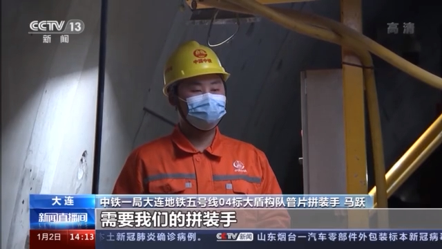 中铁一局大连地铁五号线04标大盾构队管片拼装手 马跃:在咱们整个管片的拼装过程中,有七个环节需要我们的拼装手,有绣花一样的耐心来完成。