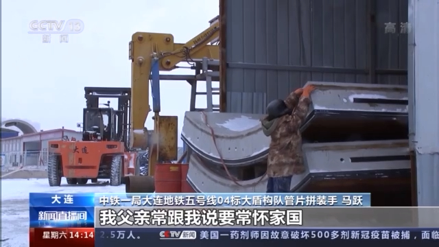 中铁一局大连地铁五号线04标大盾构队管片拼装手 马跃:我父亲经手的每一片管片,也会反复地检查几遍,我父亲常跟我说,要常怀家国,我们父子代表我们家,我们小家把活干好了,我们国家就建设得好了,国家好了,我们小家也就会更好。
