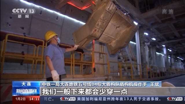 中铁一局大连地铁五号线04标大盾构队盾构机操作手 王斌:因为我们里边好多设备施工散热,和地面温差特别大,我们一般下来都会少穿一点,以免就是到里边衣服湿透了没法换。