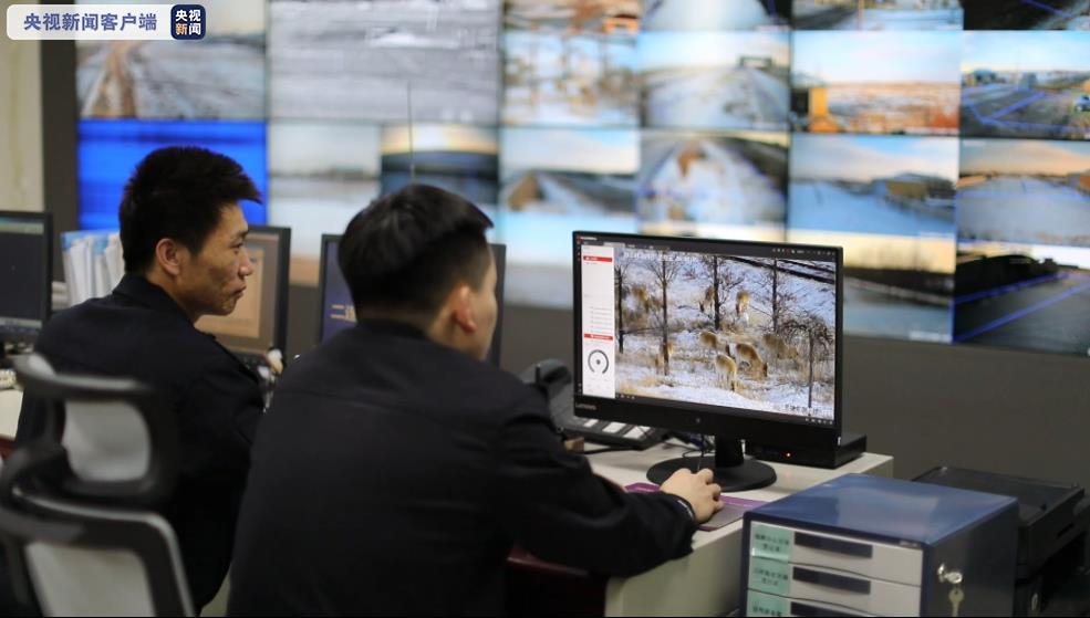 监控画面中,清晰看到中蒙边境草原上,数百只野生黄羊成群活动,野生黄羊时而在灌草丛中低头觅食,时而结伴奔跑,成为冬日里一道亮丽风景。