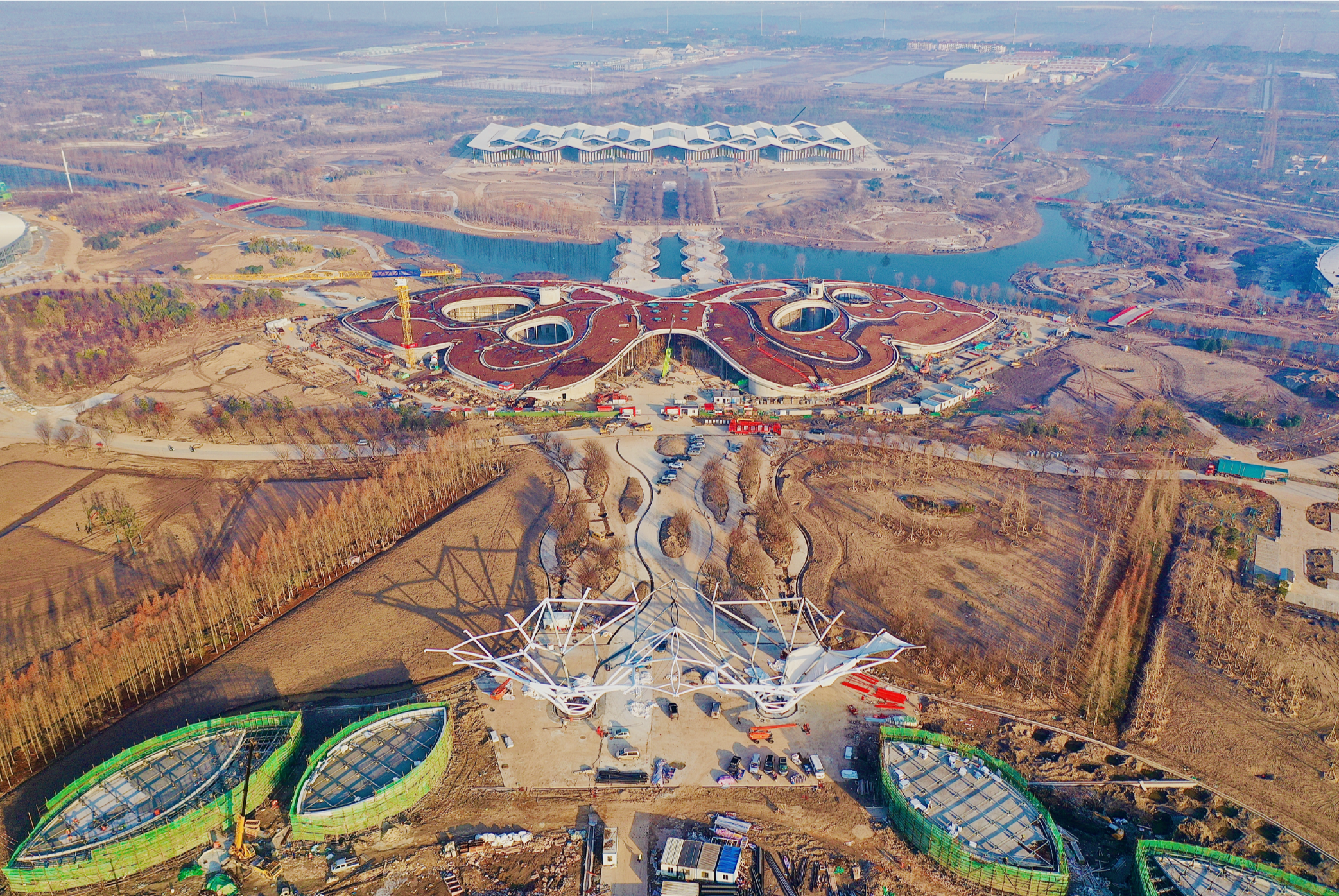 新华社上海1月2日电(记者许东远)2021年伊始,距第十届中国花博会开幕只剩不到5个月。记者从举办地上海市崇明区获悉,三大主体场馆建设进度顺利——世纪馆结构封顶;复兴馆进行玻璃幕墙等安装施工,整体进度完成86%;竹藤馆基础结构施工完成。临时场馆总体进度完成94%,其余配套建设紧锣密鼓推进中。