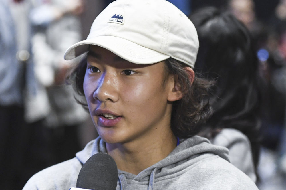 ↑2019年12月10日,苏翊鸣在沸雪北京国际雪联单板及自由式滑雪大跳台世界杯媒体见面会上。新华社记者 夏一方 摄