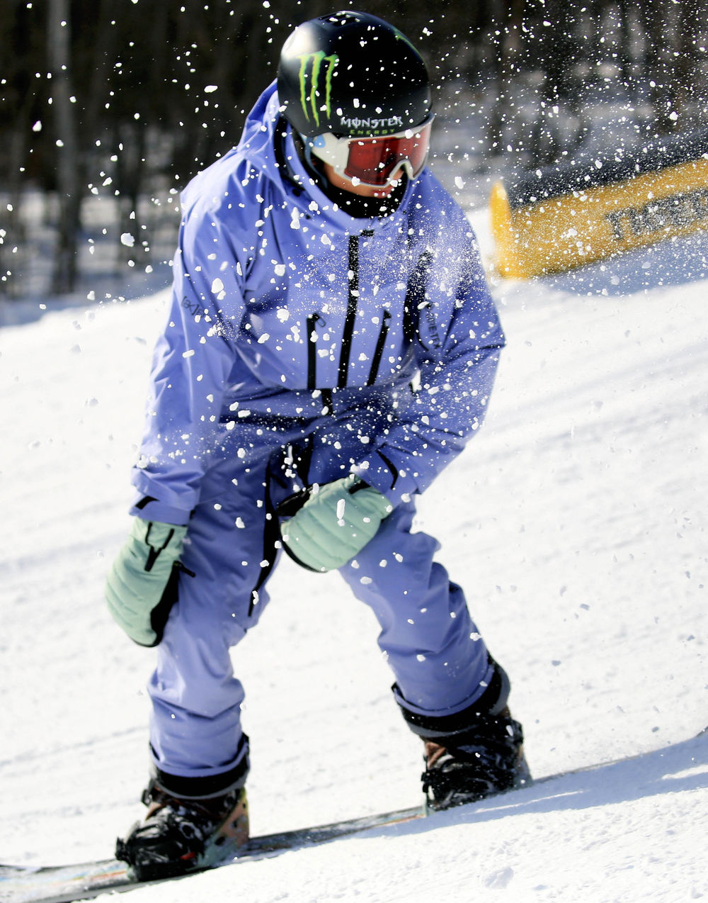 ↑2020年12月10日,在吉林长白山万达泰格岭地形公园,苏翊鸣进行单板滑雪坡面障碍技巧项目训练。新华社发(施维 摄)