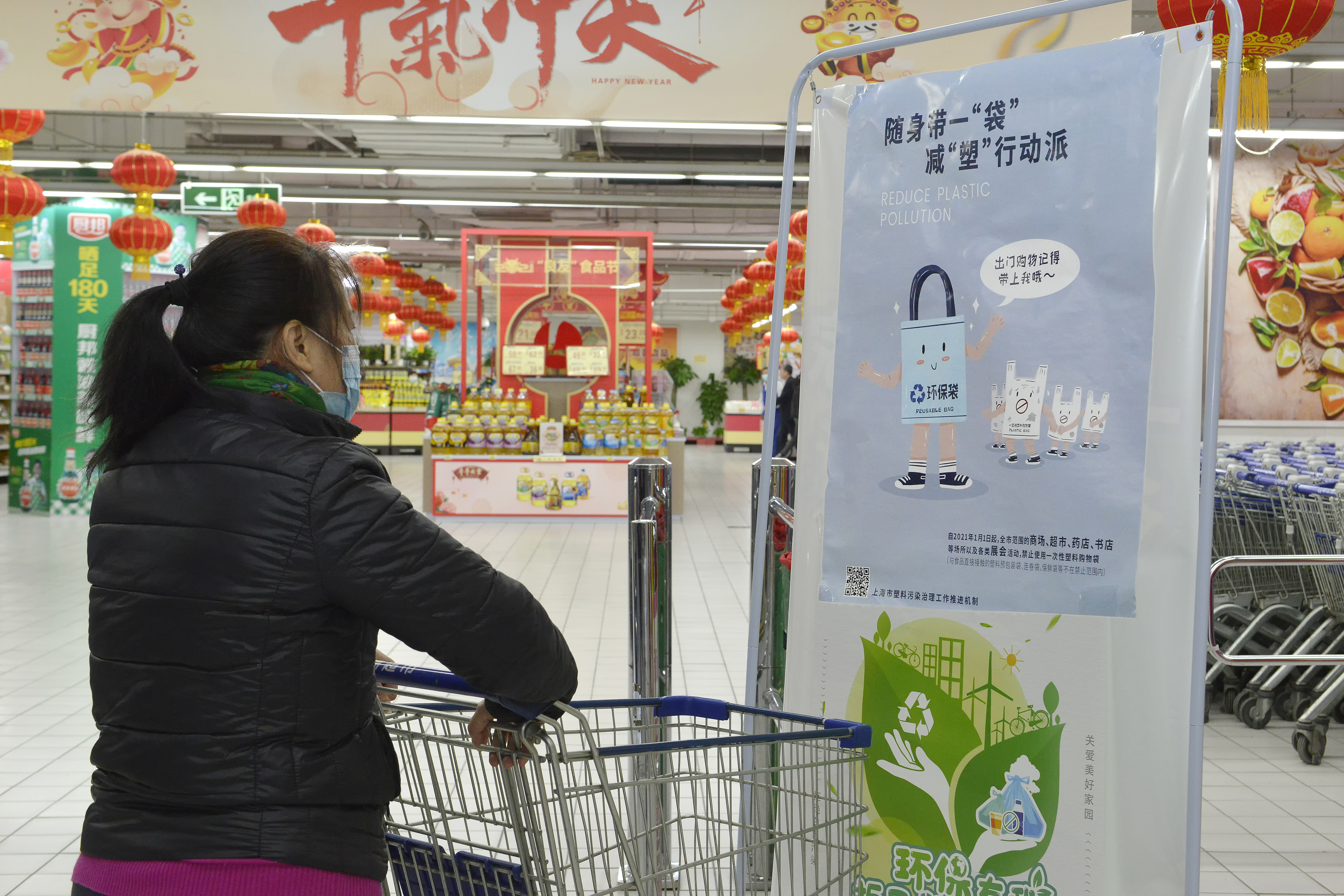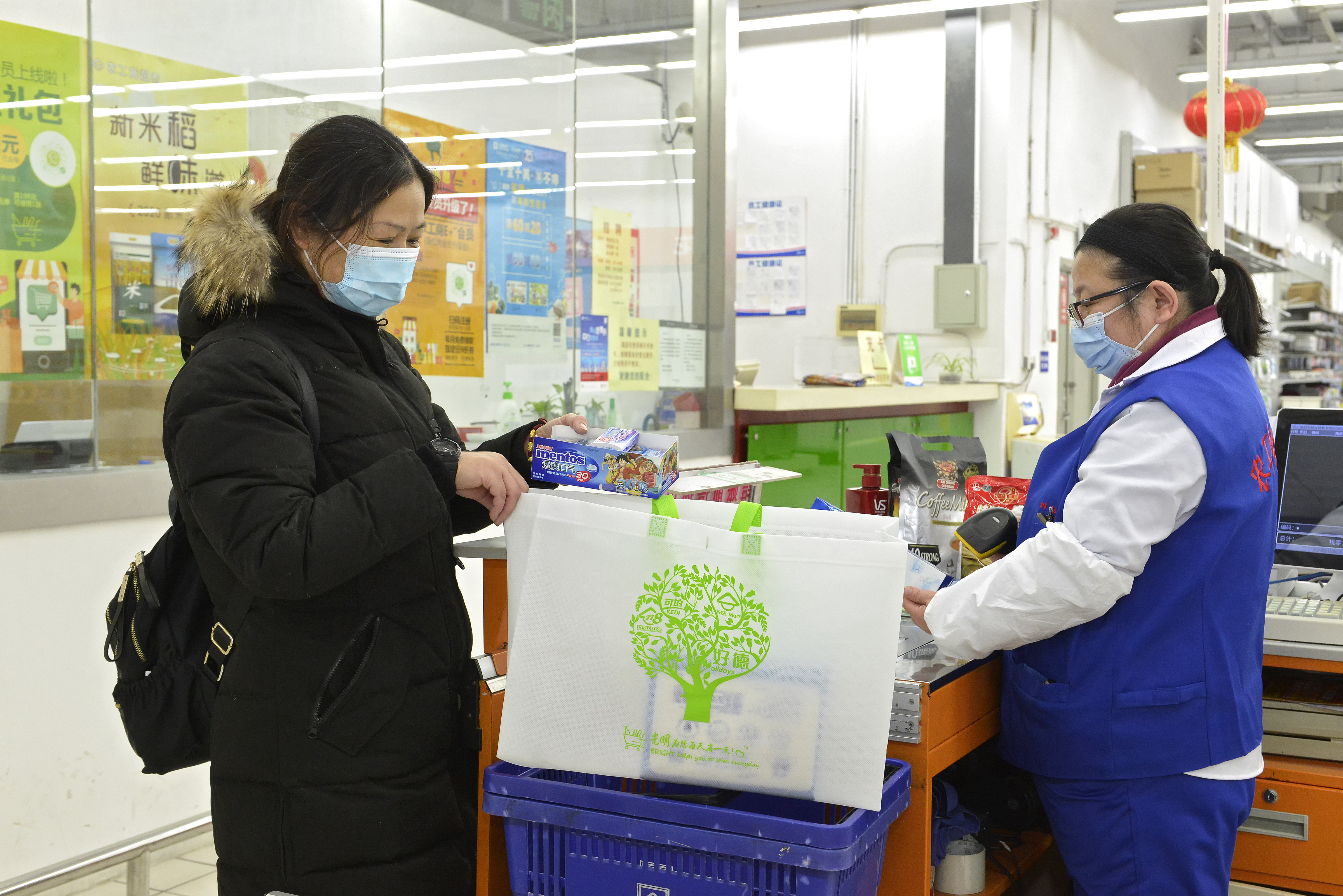 农工商超市(集团)有限公司总裁助理郭悦表示,早在一个月前,企业就通过在微信公众号、门店张贴海报等方式发布了相关宣传信息,同时在上海千家门店内准备好新的无纺布购物袋,“虽然生鲜区的连卷袋还能继续使用,但为了鼓励消费者减少一次性塑料袋的使用频次,我们也张贴了温馨提示,希望大家按需取用、保护环境。”