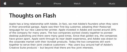 △乔布斯《Thoughts on Flash》文章截图(图片来自网络)