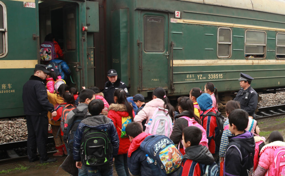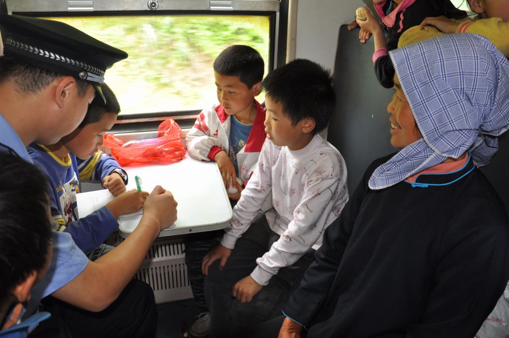 乘坐绿皮火车的孩子