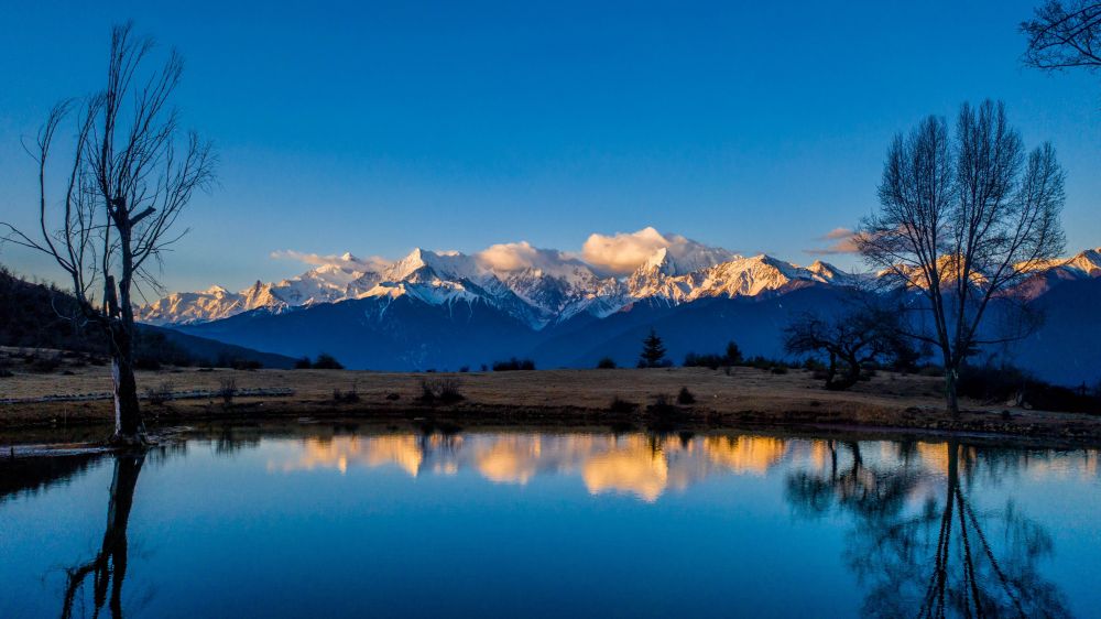 日出时分的梅里雪山一景(无人机照片)。新华社记者胡超摄