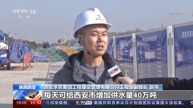 西安水务集团工程建设管理有限公司工程部副部长 赵玮:项目建成后,每天可给西安市增加供水40万吨,较以往用水高峰(期)可增加供水量20%以上。