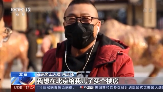 在京务工人员朱连伟告诉记者,2021年新年愿望,想在北京给儿子买个楼房。现在用五年时间,300来万攒了200万了。