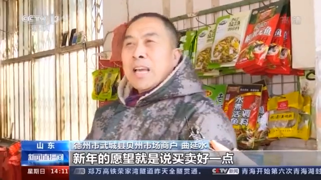 山东德州商户曲延水的新年愿望是希望买卖好一点,一家人平安一点,身体健康就行。