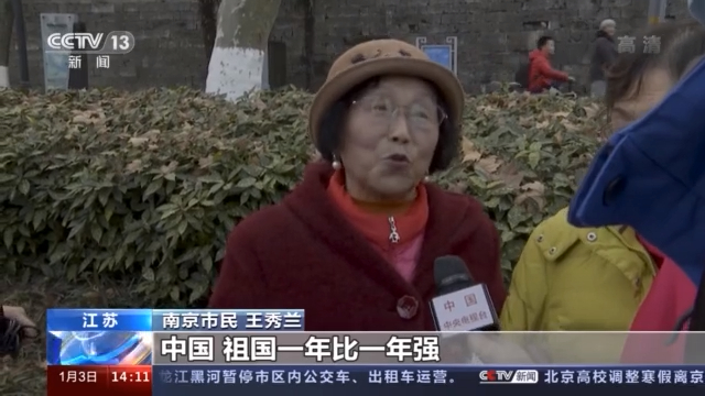 南京市民王秀兰告诉记者,她新年的愿望是,希望祖国一年比一年强。王秀兰说,我今年马上就81岁了,我们活得很开心,比老一辈强得不是一点。