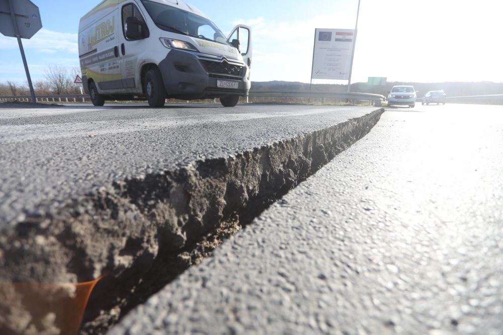 这是2020年12月29日在克罗地亚中部城市锡萨克拍摄的地震后开裂的路面。
