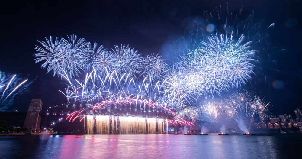1月1日零时,澳大利亚悉尼海港大桥畔燃放烟花,庆祝新年到来。