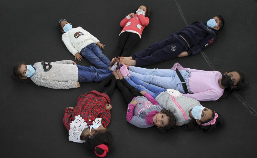2020年12月28日,巴勒斯坦儿童在加沙城的一个公园玩耍。