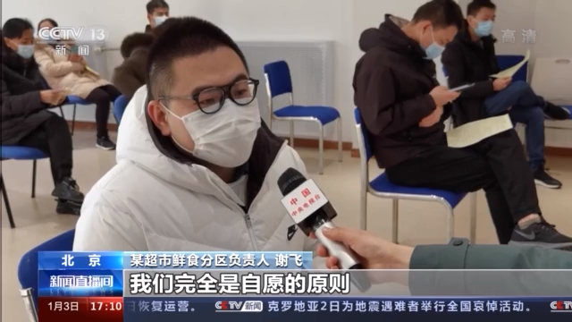 某超市鲜食分区负责人 谢飞:由市场监督管理局跟食药所安排我们这一次集中的接种,告知我们相关的9条注意事项,哪些是不可以进行接种的。我们完全是自愿的原则来参与的这次接种。打的是胳膊,打完之后的话,肌肉可能会有点酸痛,但是其他的没有不良反应。从等待到接种大概也就花了15分钟左右时间。
