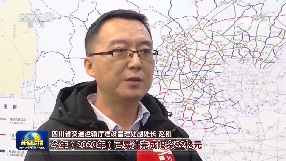 四川省交通运输厅建设管理处副处长 赵刚:今年(2020年)已累计完成投资52亿元,这些项目的建设将有效支撑,成渝毗邻地区、相邻城市加快构建“一小时”交通网。