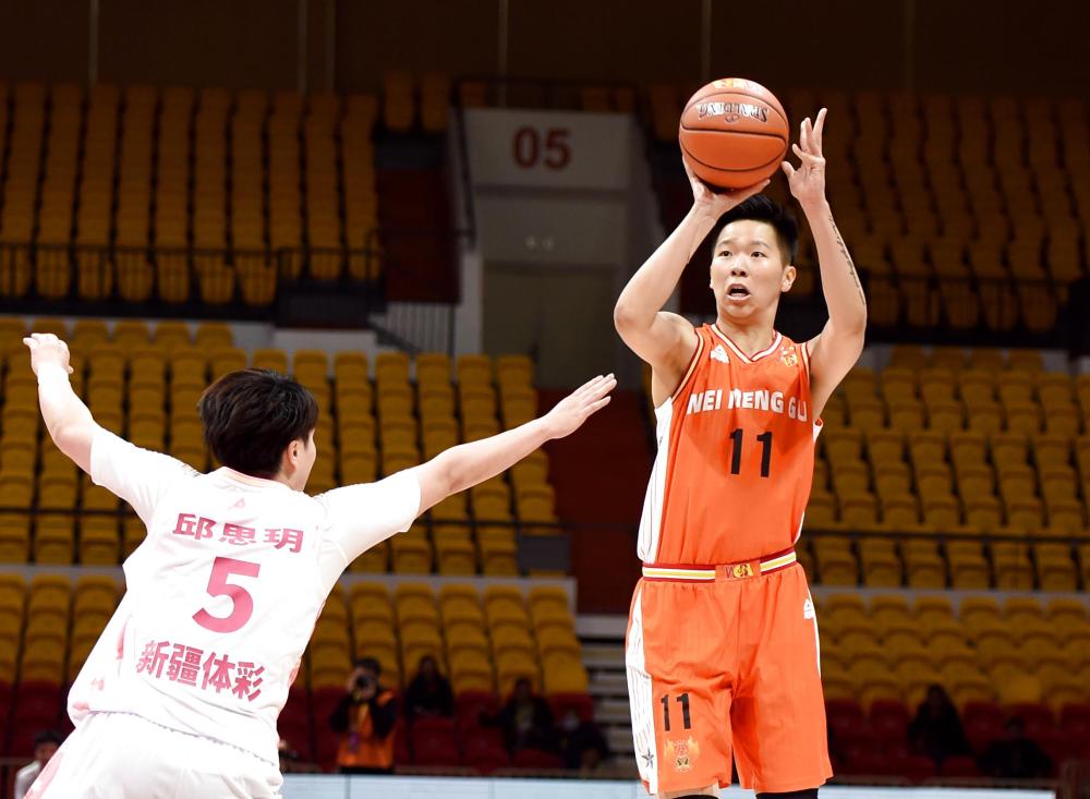 图为1月1日,内蒙古农信队球员黄思静(右)投篮。当日,在安徽蚌埠进行的2020-2021赛季中国女子篮球联赛(WCBA)总决赛首场比赛中,内蒙古农信队以77比71战胜新疆体彩队,以总比分1比0暂时领先。新华社记者 周牧 摄