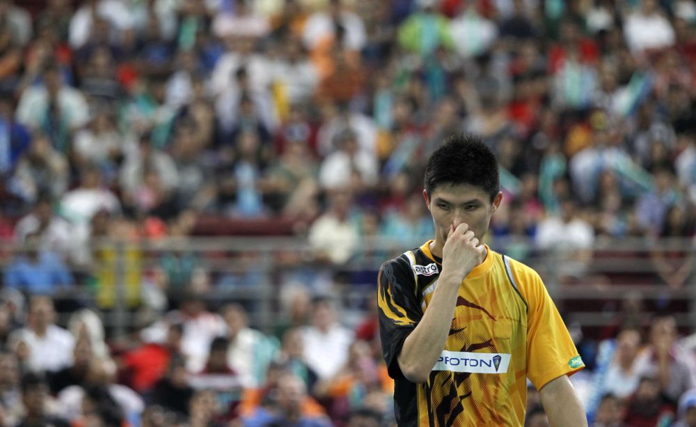图为2010年5月14日,当时的马来西亚队选手黄综翰在男单比赛中以0比2不敌中国队选手陈金。新华社记者张晨摄