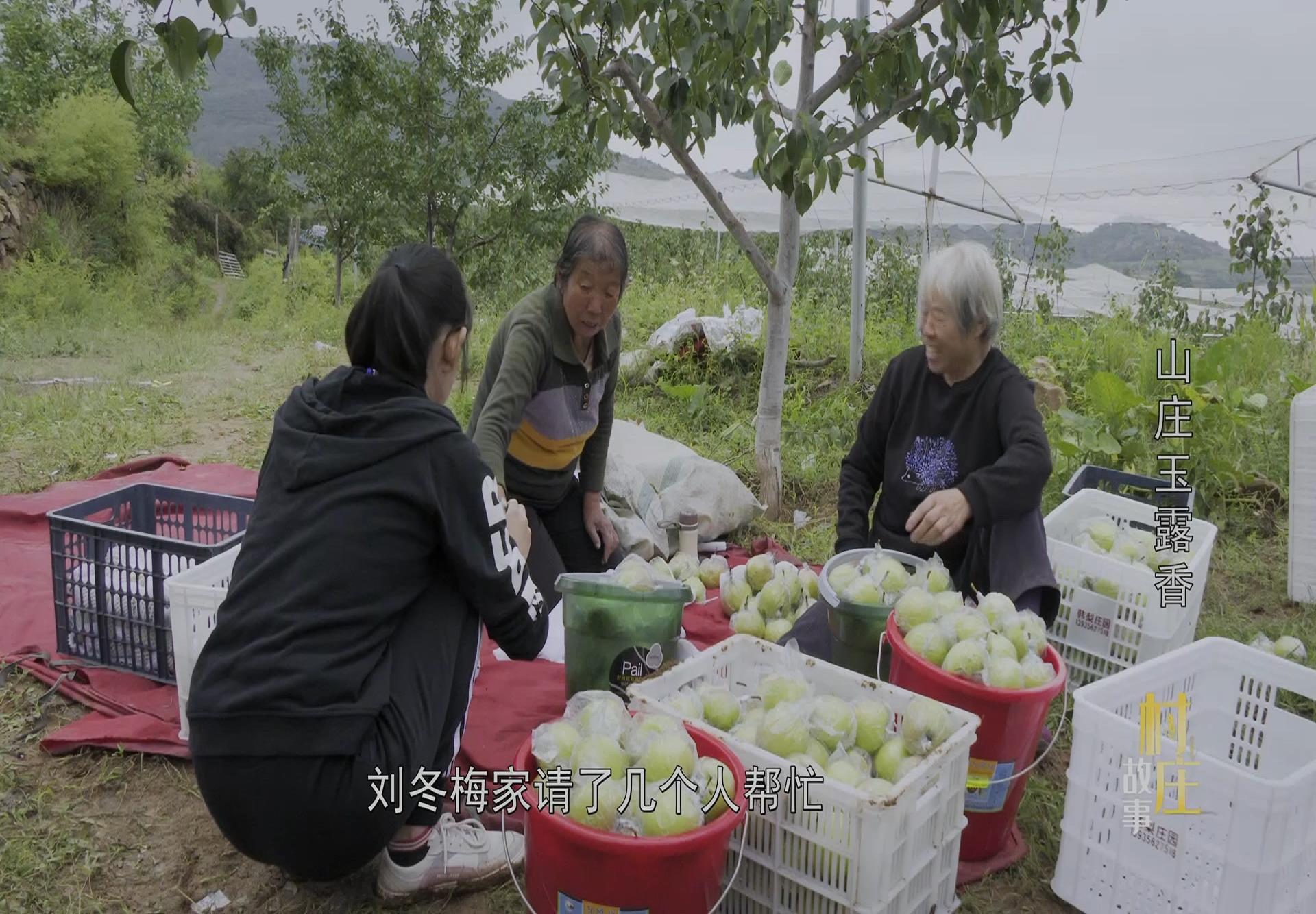 相比之下,韩家庄的梨树地里是一片忙忙碌碌。72岁的刘冬梅,种梨技术在村里数一数二,和74岁的老伴儿张根生创造过一亩三分地的梨树收入一万八千多块钱的纪录。