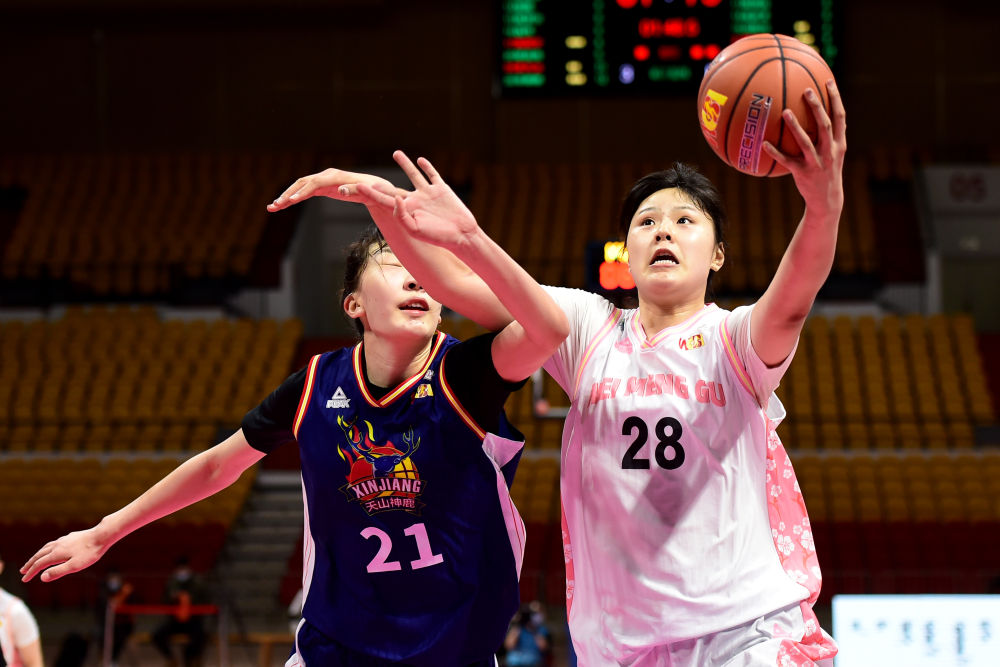1月3日,内蒙古农信队球员李月汝(右)上篮。新华社记者 黄博涵 摄