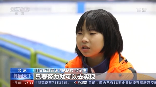 丰台区短道速滑队队员 马子惠:(记者:2021年你有什么就是目标)称霸U10。(10岁以下年龄组)(记者:你觉得就是你的这个目标和计划好实现吗?)去更刻苦地训练,比以前要认真100倍,只要努力就可以去实现。