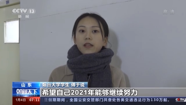 烟台大学大学生 傅于说:希望自己2021年能够继续努力,然后不要熬夜,要好好的规划自己。