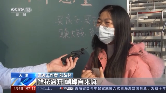 医务工作者 刘丛林:(记者:我看您写的新年的愿望是家人健康平安自己学习努力,然后还有遇到相爱的人,这是三个小愿望是吧?)三个大愿望,我觉得都挺大的。(记者:还在学习阶段)没有,我工作了,但是还想继续学一学。不是有一句话叫什么,鲜花盛开,然后蝴蝶自来。对于我来说,我可以自己更努力的,中间更加发力一点。 (记者:让自己变得更好)对。