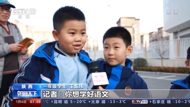一年级学生 王烁玮:(记者:你的新年愿望是什么呀?)我想学好语文。(记者:那语文你现在学得怎么样?) 还可以。(记者:怎么才能学好语文?) 上课认真听。
