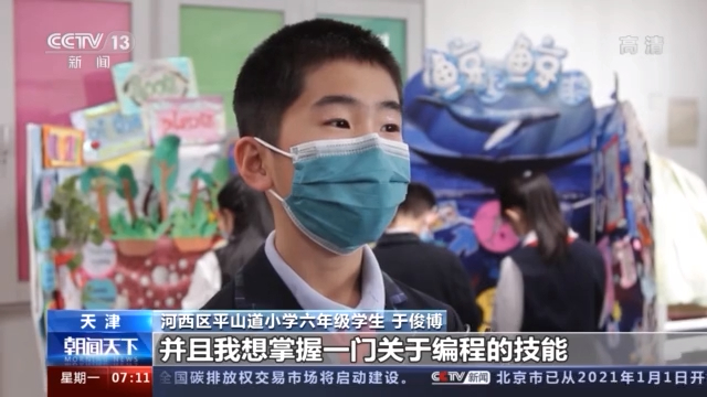 天津市河西区平山道小学六年级学生 于俊博:我已经六年级了,我想考入一个理想的初中,并且我想掌握一门关于编程的技能。