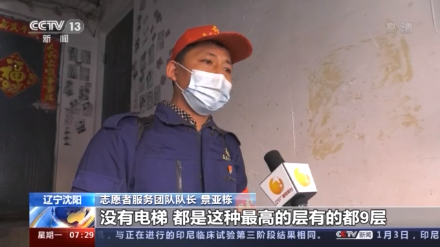 志愿者服务团队队长 景亚栋:没有电梯,都是这种最高的层,有的都9层 因为老旧小区都是一些老年人,我们合计就是说能往这方面这些地方走一走,帮助他们解决不少实际问题。