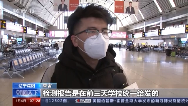 乘客:检测报告是在前三天学校统一给发的,因为我当时也了解到沈阳火车站是需要通过核酸检测报告才能进站的。