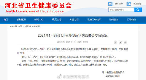 1月3日0—24时,河北省新增报告13例本地无症状感染者,解除隔离医学观察1例(境外输入)。