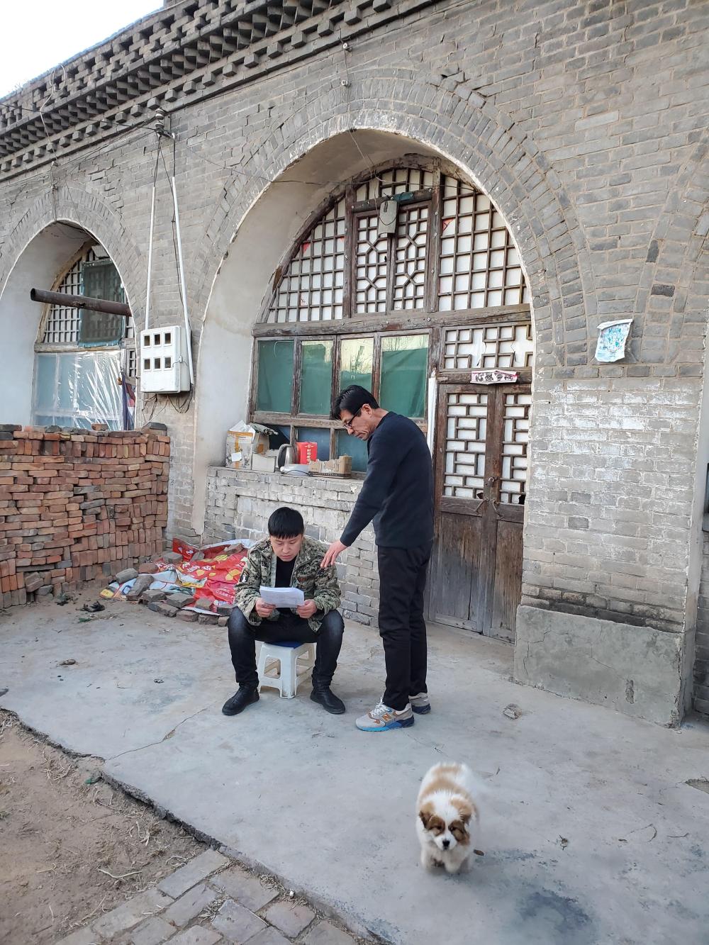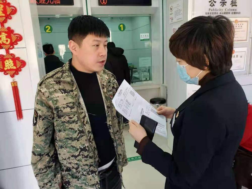 ▲李成(左)在娄烦县马家庄信用社向工作人员反映自己“被贷款”的情况。 受访者供图