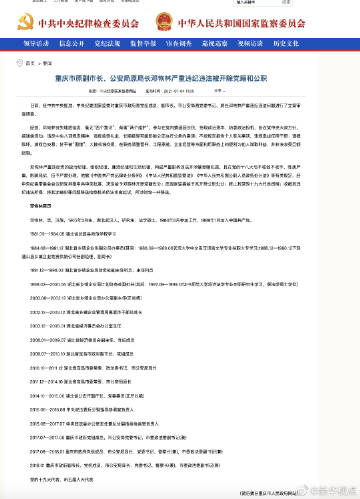 2017.08—2018.01 重庆市政府党组成员,市公安局局长、党委书记、督察长(兼),市委政法委副书记(兼)