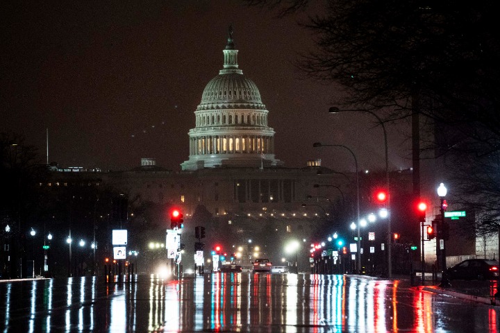 1月1日,位于美国华盛顿的国会大厦笼罩在雨中。新华社记者刘杰摄