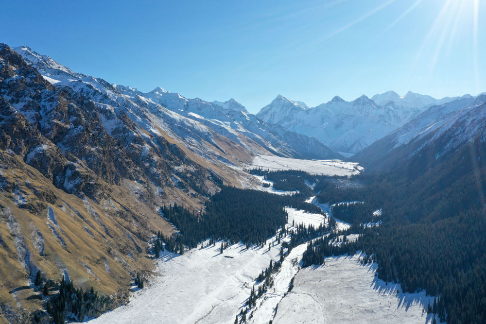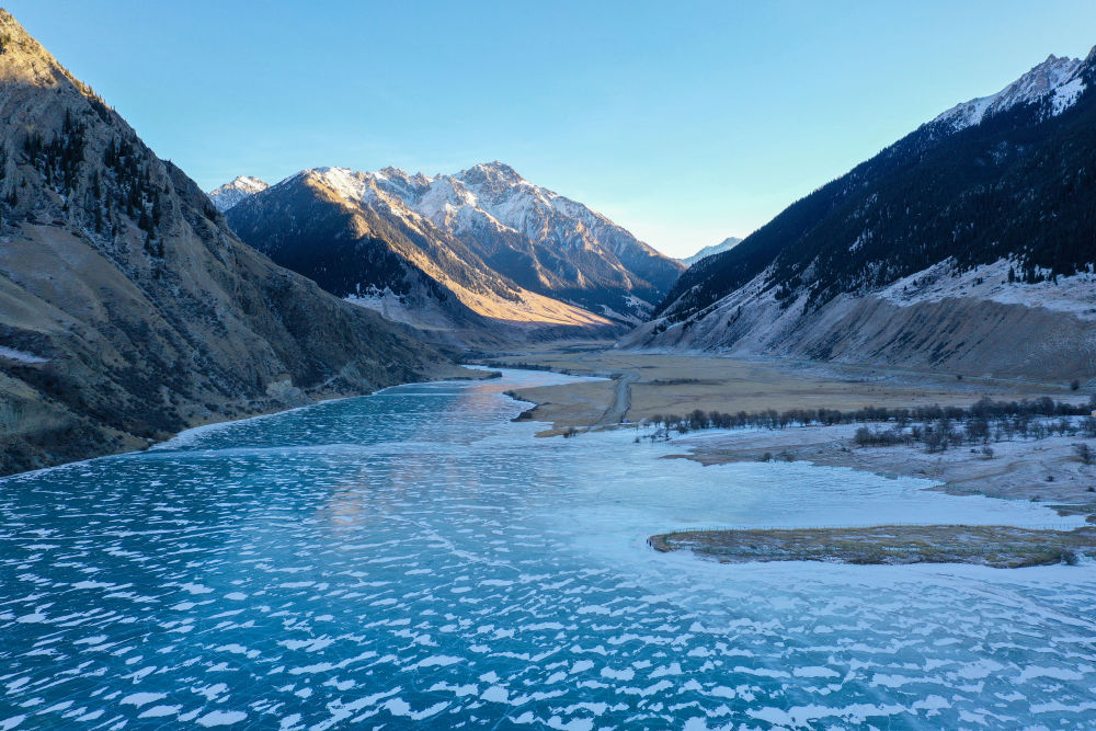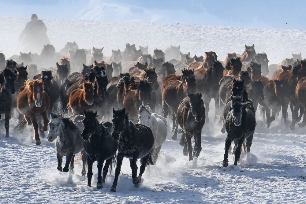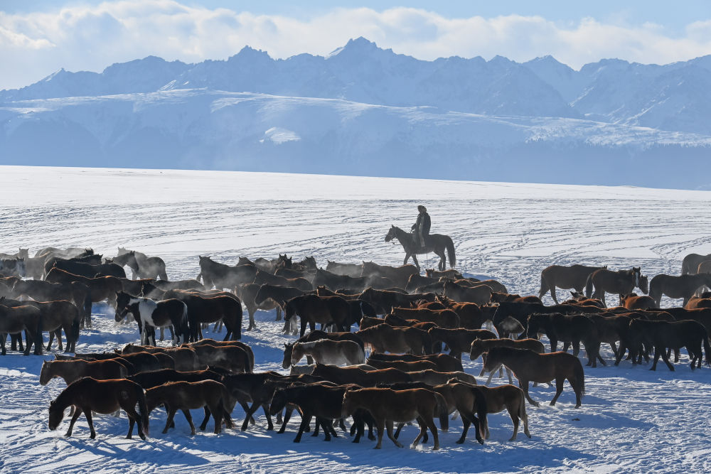 寒冬时节,位于新疆西北部的伊犁河谷一片银装素裹,连绵起伏的群山与天空相连,冰封的湖面、广袤的雪原、奔驰的骏马等构成一幅幅美丽的画卷。