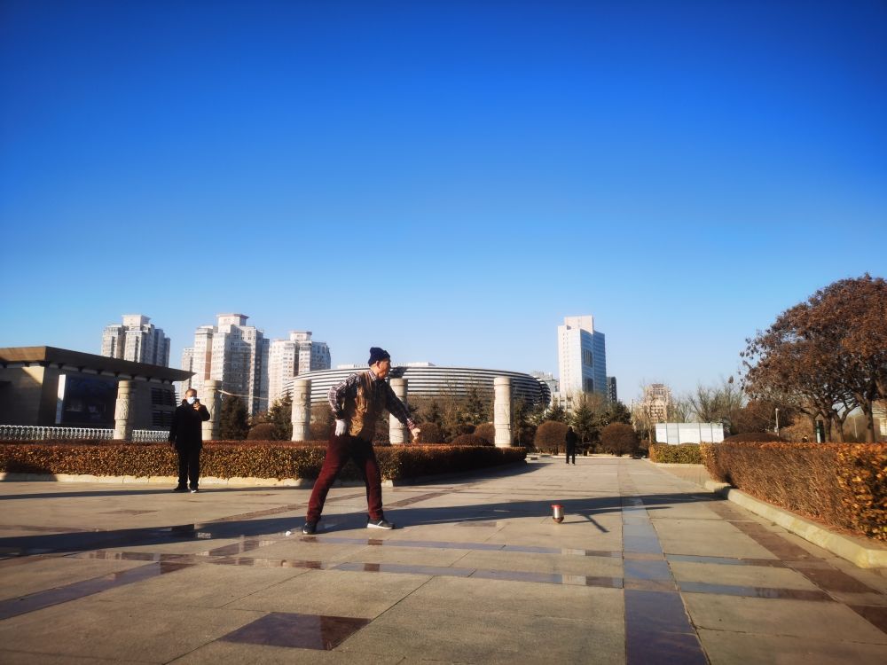 新华社太原1月4日电 (记者李紫薇)一位偏瘫大爷、一个能发出声响的陀螺,构成了山西省博物院门前广场的一道风景。