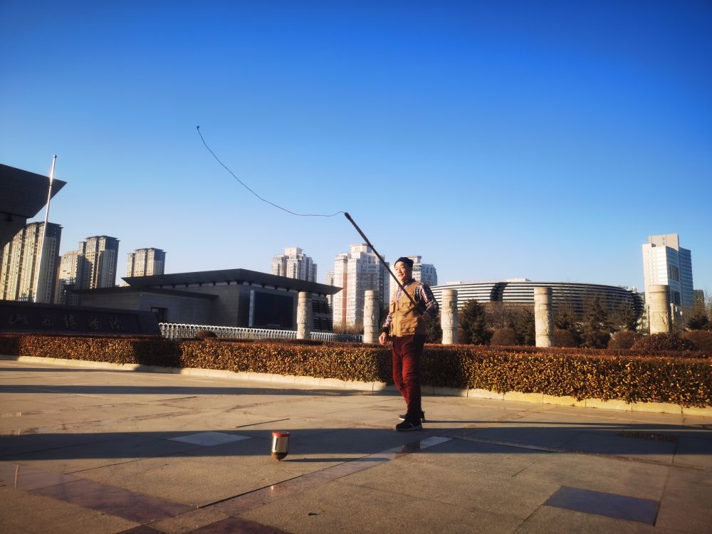 每天到下午三四点,这样的场景就会出现在山西省博物院门前的广场上,已经持续了两年多。很多游览者驻足观看,有的人还拍下小视频,感叹“老爷子真不简单”。