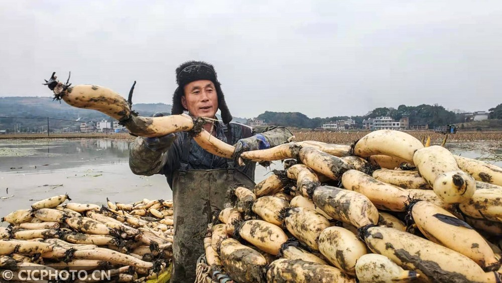 ↑2021年1月3日在湖南省衡阳市常宁市板桥镇板桥村拍摄的莲藕。CICPHOTO/唐雍钧 摄
