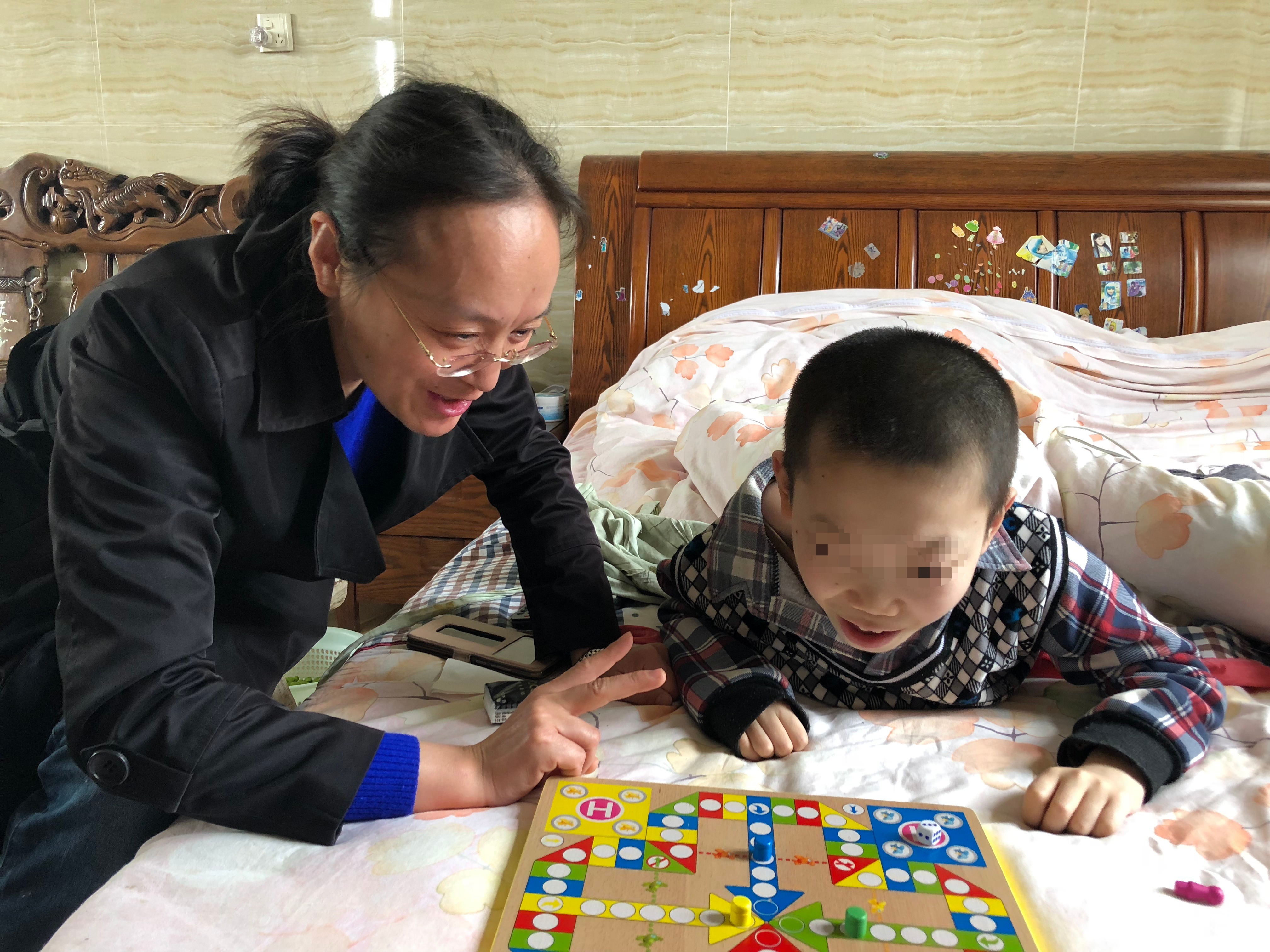 2019年5月9日,葛明丽老师(左)在小文家送教。(图片来源:南通市教育局)