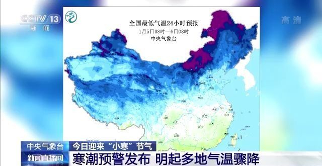 根据中央气象台的预报,一股较强冷空气在未来几天将影响我国,全国多地有大风天气,气温骤降,中央气象台在今天(1月5日)发布了寒潮蓝色预警。