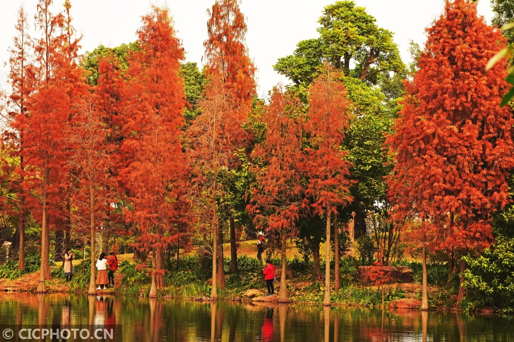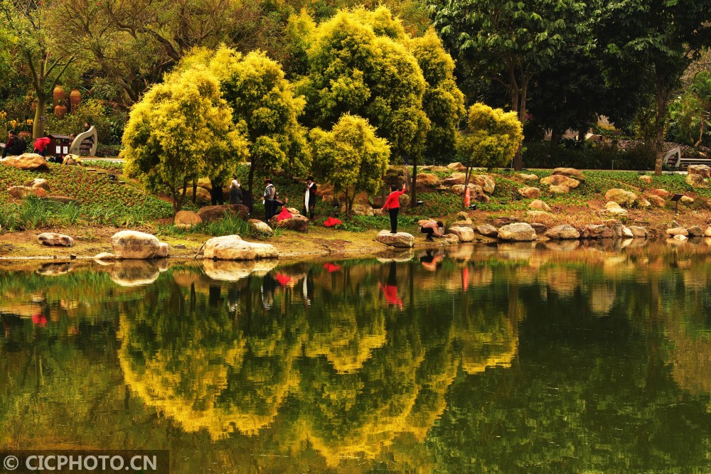 寒冬时节,广西壮族自治区南宁市各大公园景区内却依然是一片秋景,众多游客来此参观拍照,南国的湖光山色美景让人驻足留恋。