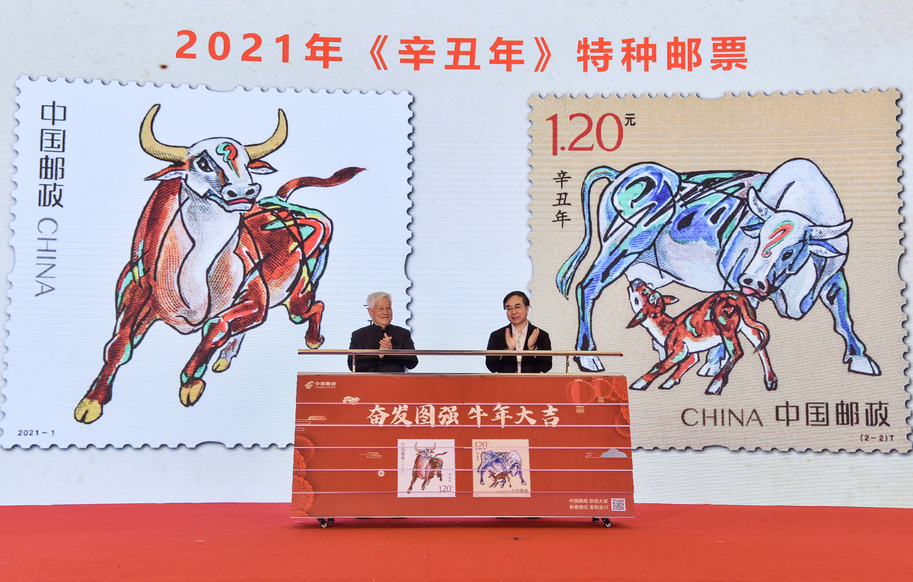 当日,中国邮政发行《辛丑年》特种邮票1套2枚,图案分别为“奋发图强”“牛年大吉”。
