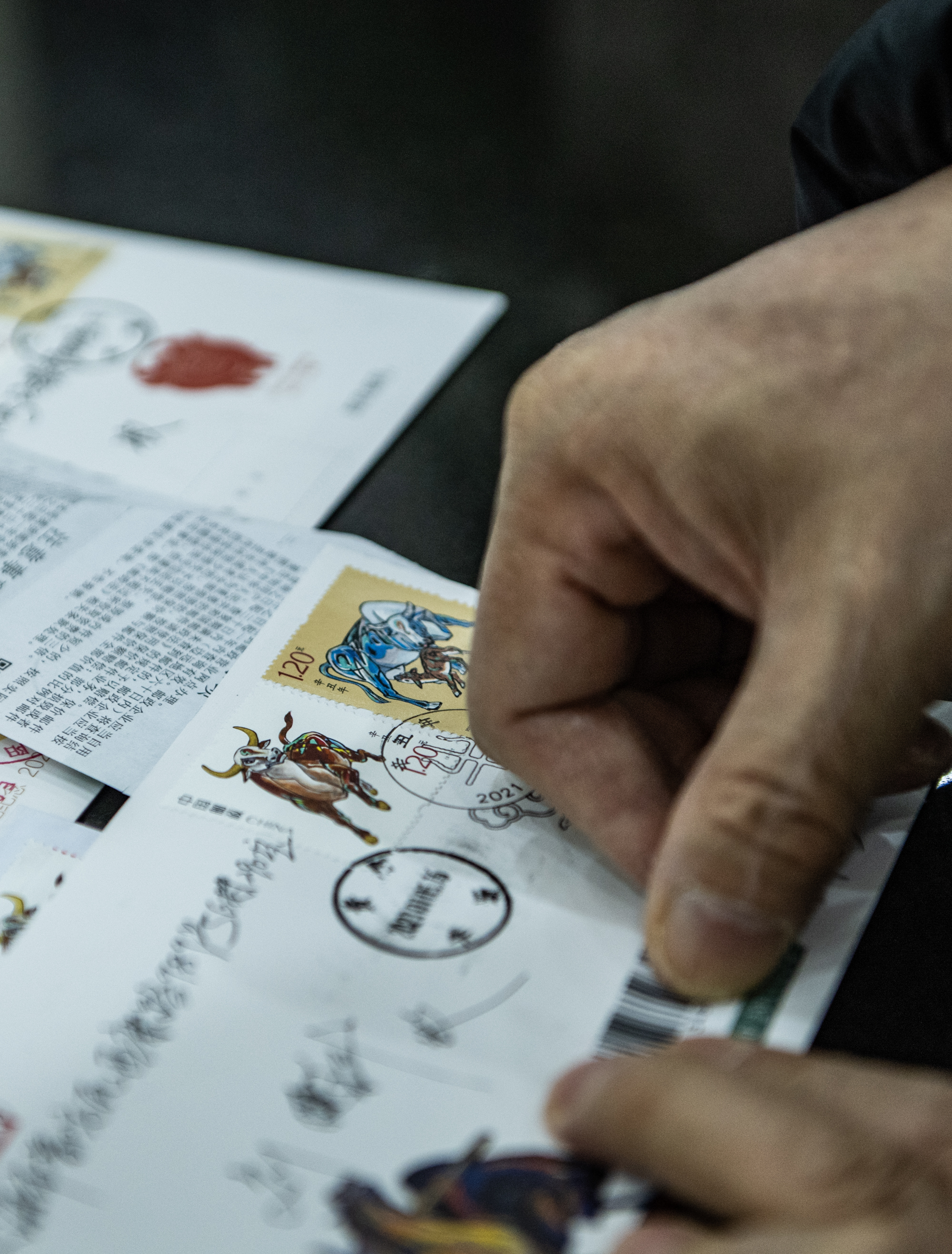 1月5日,贵阳市民在邮寄贴有《辛丑年》特种邮票的信件。