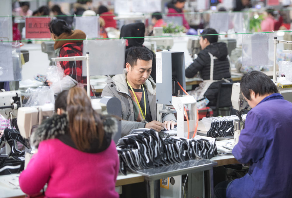 ▲“上岸”后的徐保安(中)在一家鞋业公司生产车间内工作。